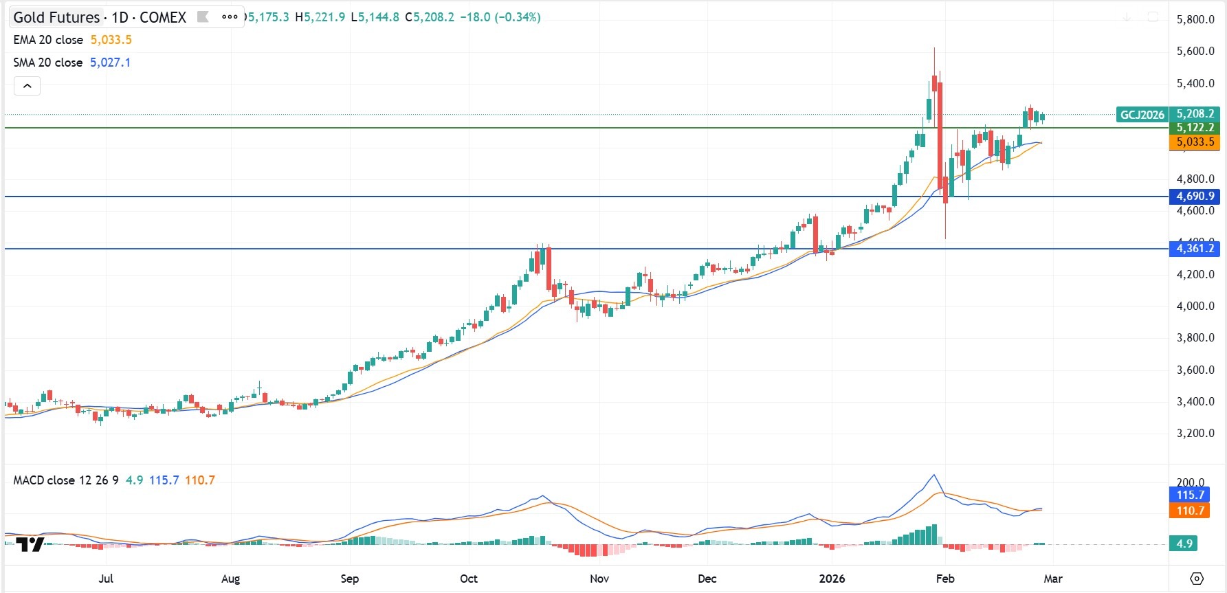由于黄金保持在5,000美元以上,它可能会对实际收益率、美元走势和更广泛的风险偏好的变化产生高度反应。