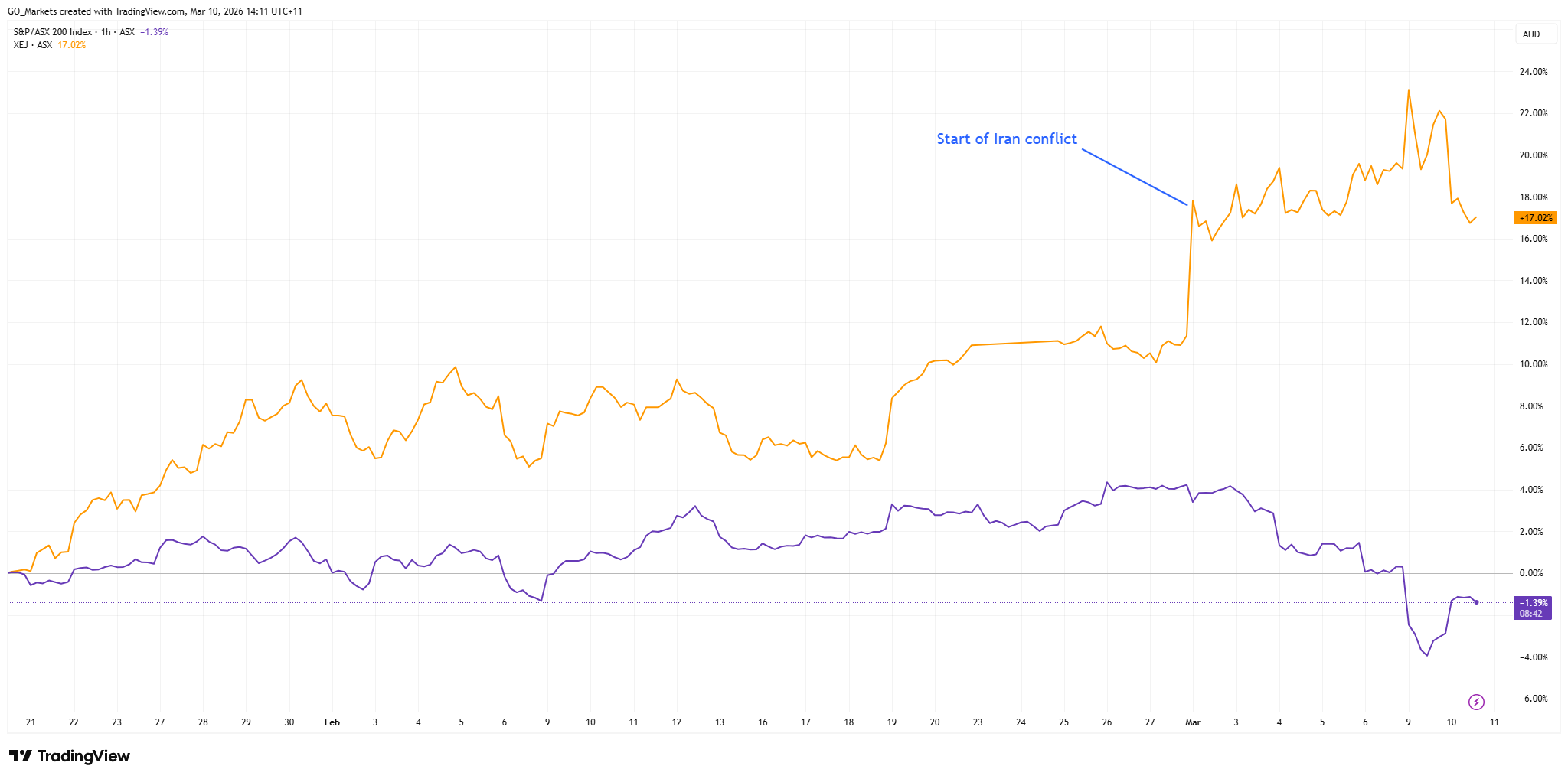 | XEJ | Energy | Santos, Woodside | 3.6% |