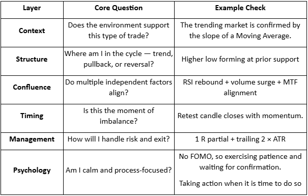 When combined, six interconnected layers can come together to form the full “anatomy” of a higher-probability trading setup: