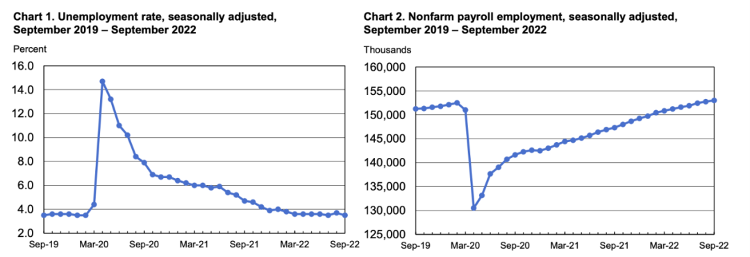 同样,我们来看这一份来自美国劳工统计局的数据,服务业减去能源之后的成本,目前在急速攀升,相较于1年前,上涨了6.1%,并且,这个趋势还在快速上升。从CPI这个角度来看,美联储没有放松的机会,药不能停,还要继续维持加息的状态才有可能达到打击通胀的目标。美联储加息容易,一般的经济可受不了这么折腾,上面分析的通胀的形式非常严峻,是需要继续大力度加息的,但是这一剂猛药是否可行,还要看美国的经济是否能够撑的住。关于这一点,美联储已经给市场打好了预防针,告诉市场有可能会出现短期的阵痛。但是有什么数据可以参考呢,我们就要看就业数据了。
