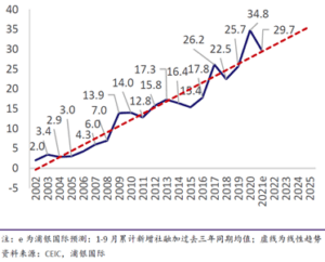(图33)新增社融将回到2015年以来的增长轨道(万亿元)