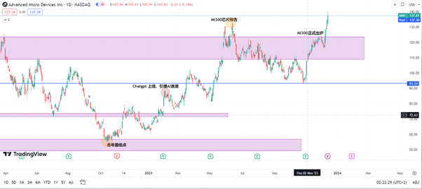 (Source:Tradingview)而AMD的股价同样保持在一个较高的水平,约137左右。