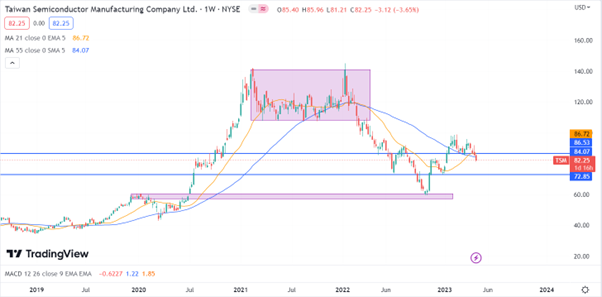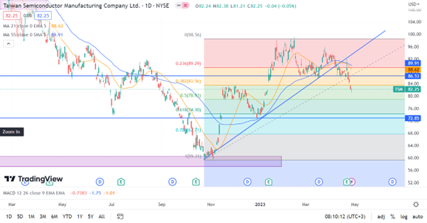 (Source:Tradingview.)在大周期范围内,台积电股价还是在这个反弹的阶段,虽然有回撤,但是还没有跌破黄金比例的0.618。
