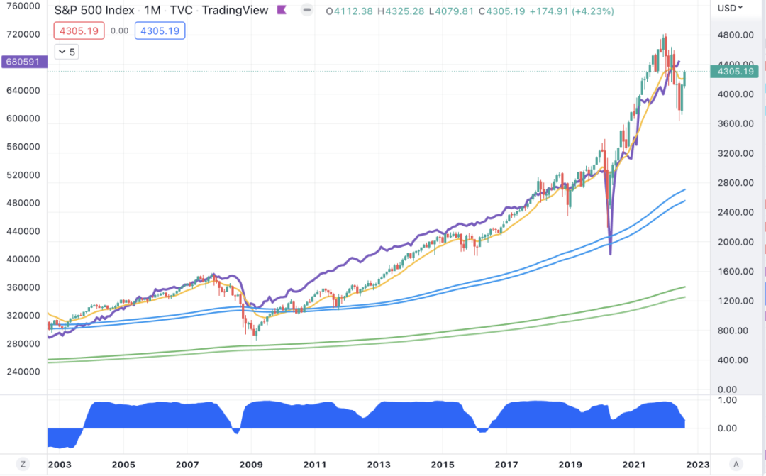 为什么被称为“恐怖数据”?零售销售数据有一定的预估性,因而其具有领先指标的意义;另外,人口普查局调查的对象范围广,覆盖全国各地区各个行业,人口普查局采用分层随机抽样的方法选择大约5500+零售和视频服务公司,然后对其销售额进行加权和基准测试,以代表超过300万零售和食品服务公司的完整范围。因而数据足以反映全美国的零售销售增减情况,而零售销售数据是反映消费者消费需求及能力的主要指标,基本能代表美国居民的消费变化;最重要的是,美国70%的GDP是靠消费拉动的,零售销售数据直接反映美国居民的消费增减变化,因而,该数据对判断美国经济现状和前景有非常重要的作用。由此,很多投资者、分析师、经济学家等金融人士都十分重视零售销售报告,在历史上,该数据公布时,往往会引发外汇和黄金市场的剧烈波动,因而也称为:恐怖数据。但是并非每一次公布都会引起市场剧烈波动,投资者也要慎重看待这个指标。数据影响:公布值>预测值=利好美元另外,我们不能忽略的是,零售销售从另外一个角度反映了通胀的水平。零售数据爆棚代表着经济可能会有过热的风险,近一年多以来,美联储非常在意通胀水平的变化。这也令零售销售数据获得了更多的关注。如果想要观察零售销售数据对股市的影响,我们以标普500指数作为参照物就会发现一个很有意思的走势,如图,这是月线级别标普500和零售销售数据的对比,从K线上不难看出两者的近乎于通胀同跌的走势,如果还不够清晰的话,下方还有一个correlation coefficient(相关性指标),在上涨时期,两者的相关性几乎都保持在1(高度正相关)左右,在暴跌后接近反转的时候,相关性才有所下降。要注意的是,该相关性是在月线级别体现的(也只能在月线级别对比,因为零售销售数据每月公布一次),所以在把握趋势的时候,我们要给出月线级别的周期限制,并不完全适用所有周期,在落实在交易的时候还是要结合指标和关键位置。