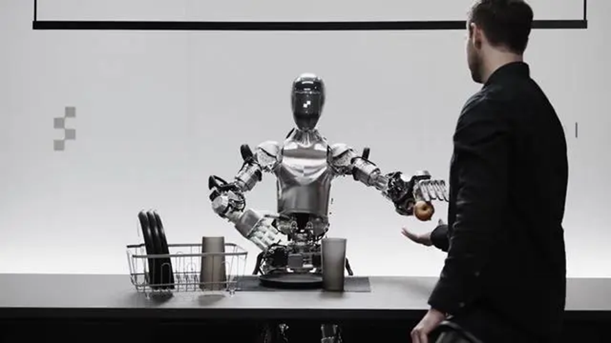 Source:CB Insights2024年OpenAI又一次在生成式AI的应用赛道上引领了潮流 --- 人形机器人赛道。他押注人形机器人领域独角兽公司Figure AI,在投资500万美元的同时也嵌入了其大模型算法为机器人提供了超强大脑,Figure AI公司自己提供了机器人的肉身,合体之后的机器人成品展示出了就是一个能够读懂指令,做出相应动作的人型机器人。他可以观察环境,可以说话,还可以完成传递物品,捡东西和洗碗甚至煮咖啡等复杂动作。这标志着人类文明离使用智能机器人取代人工提高生产效率,彻底解决劳动力短缺的目标更近了一步。
