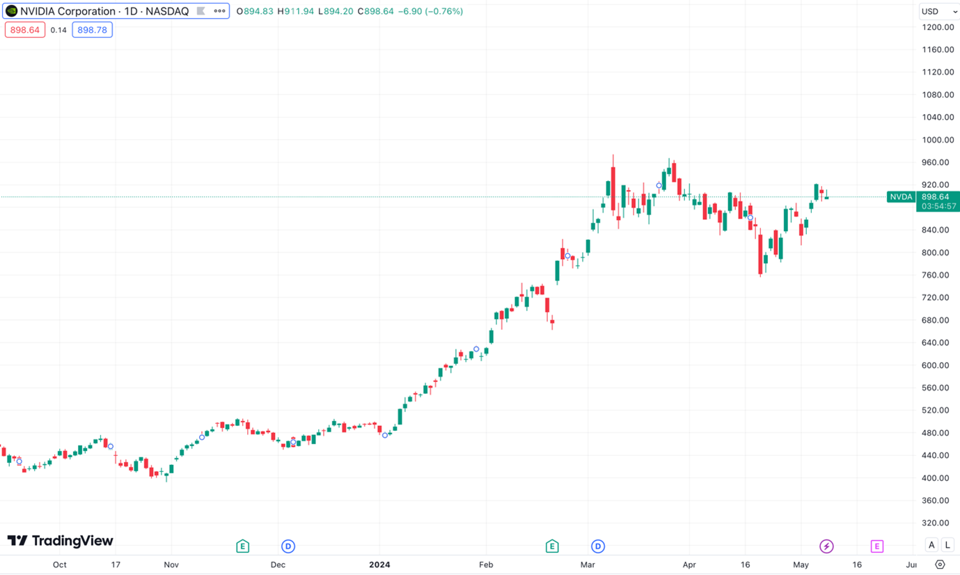 Figure AI作为于2022年才成立的公司,在此次研发之前市值就已达约20亿美元,新一轮融资达6.75亿美元获得贝佐斯,英伟达,微软和OpenAI的加持。Figure AI是在合适的时间出现在了合适的赛道可以用来被下注制衡马斯克的Optimus人形机器人的合适的企业。天时地利人和成就了Figure AI的成功。但并不是每一家身处AI赛道的初创企业都能够正好遇到如此得天独厚的条件。现在的这种只要是跟AI行业相关的初创企业,便很容易能够获得动辄数千万上亿的融资的现象又是否是一种AI行业泡沫正在形成的预示呢?英伟达作为AI芯片的龙头企业,其提供的算力支持是各大科技公司的首要选择。其芯片被各大科技巨头疯抢,股价在2023年累计暴涨240%,2024开年至今也实现了超90%的暴涨。这足见AI领域的火热投资情绪。