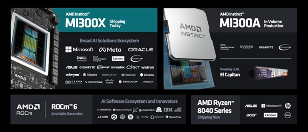 (Source:AMD)长期以来,行业一直期待出现一款能与Nvidia竞争的产品,以创造市场竞争。MI300X在技术规格上实现了这一目标。尽管在现实世界中,针对AI应用的性能可能会稍显不足,但如先前所述,这可能并不是关键问题。重要的是市场对GPU的需求日益增长,而AMD通过提供新的选项,将增加市场供应,以满足目前相当巨大的需求。AMD的成功在很大程度上归功于其芯片的软件支持,在之前的产品系列中,基本上每更新一次驱动,性能就会有不俗的上升。这一点在AI领域尤为重要,因为软件端能够充分激发AI芯片的潜力,也可能导致其性能下降。AMD依靠其基于开源ROCm的AI软件堆栈和生态系统,这大大促进了用户从Nvidia的CUDA平台向AMD架构的转移和代码优化。在最近的活动中,社区成员特别强调了这种开源方法是AMD与竞争对手的关键区别。AMD与Hugging Face的合作使得超过62,000个AI模型能够在MI300上“即插即用”。虽然目前还没有具体的基准测试来展示这些模型在MI300上的表现(比如针对GPU和无线通信织物的优化情况),但在一个倾向于“即插即用”解决方案的市场中,这可能并不是主要关注点。OpenAI也宣布将在其标准Triton发行版中支持MI300。AMD新发布的ROCm V6软件进一步强化了这一优势,它包含了Flash Attention、减少到8位的数值精度和集体通信等新特性。ROCm V6不仅支持MI300,还将扩展到Ryzen客户端平台。结合MI300的ROCm 6能够提供高达8倍的性能提升。此外,AMD还发布了适用于Ryzen PC的AI软件,这款软件能够使用ONNX量化并部署预训练模型。AMD还宣布了一款新的Ryzen 8040芯片,该芯片预计将在明年发布,增强对即将到来的AI应用的支持。这些举措共同展现了AMD在AI硬件和软件领域的深度整合和创新。