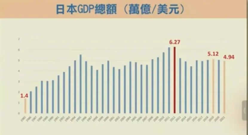 日本的货币政策极度宽松,相对的美国进入加息周期,加快了日元的贬值;而财政宽松,导致了央行的负债表不断的上升,现在日本国债占GDP的比重,已经达到266%,如果贸然加息,那么日债大概率会爆发违约危机。第三支箭叫做结构改革,它可能松绑很多很多内部的一些限制,包括了女性的劳动力,劳动力自由化也改革了,使得一些移民能够进入劳动市场,缓解劳动力的不足。总而言之,从结果上看,除了第三支箭有些成果之外,安倍想要达到的目标,几乎都没有达到。相反的,他可能造成的极大的后遗症,对于日本乃至全球经济会带来非常深远的影响。日本GDP如果用美元计算的话,在2016年是日本在全球GDP最高的时候,6.27万亿美元,可是从此趋势向下,目前已经不足中国的三分之一了。2022年的日本GDP绝对还会大幅度的减少,因为它今年是在贬值的态势。