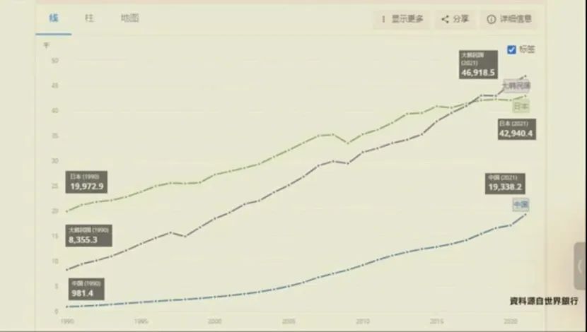 从人均GDP的角度,会发现在2012年的时候,当时他们的人均GDP是49145美元,而最新的数字,2021年只剩下3.9万。