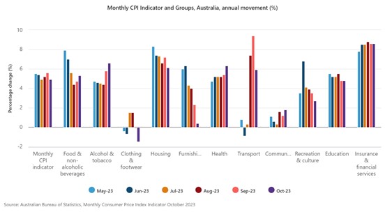 澳大利亚统计局数据显示:2023 年 10 月 CPI 增速为 4.9%