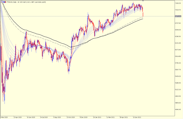 英国指数:英国指数在英国7月19日全面取消限制之后当天出现大跌。目前英国新增病例每天达到5万人。但是英国全面70%已经接种两针,除去12岁以下和部分疾病无法接种人群,70%几乎已经达到了人口接种的极限。因此英国将会成为世界各国中尝试和新冠病毒共存方式的首批试验国,(还有新加坡)。如果英国之后没有出现大批重症和大批死亡病例,那其模式将会在世界开始推广。但是如果不幸之后依然医院挤破,每天上千人死亡,那咱们澳洲的边境封锁和社交距离限制规定可能就会再次遥遥无期了。英国指数目前就因为得病人数破5万而大跌。希望之后英国政府的决定是正确的。目前的关键支撑价格6800,一旦破位,有可能会有更大下跌。免责声明:GO Markets分析师或外部发言人提供的信息基于其独立分析或个人经验。所表达的观点或交易风格仅代表其个人;并不代表GO Markets的观点或立场。联系方式:墨尔本 03 8658 0603悉尼 02 9188 0418
