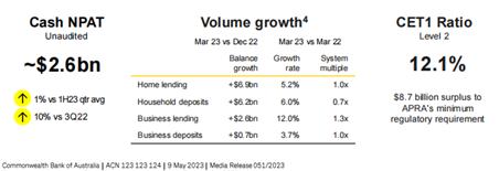 另一方面,澳洲物价数据拐头、澳联储4月曾暂停加息一次等信息来看,澳洲临近加息尾期,净息差不具备进一步扩大而为银行贡献利润增速的条件。加息环境下 衰退预期引发信贷风险在硅谷银行倒闭后,我们对澳大利亚银行体系持乐观态度。这是由于澳洲四大行的商业模式较为简单以传统银行业务的息差收入为主导,存款基础具备粘性,同时对全球风险资产的敞口较低且有相应利率对冲举措。加息环境下,尽管澳洲银行不像美国那样面临长期债券价值下跌的抛售侵扰,但信贷风险在经济衰退下引发市场担忧。尤其是加息对经济效应存在滞后性,经济一旦下行,居民存款下降、房贷需求下降、坏账及违约可能大幅提升。5月4日 NAB整体不达预期 股价单日下挫超6%NAB半年收入同比增长19.3%,现金收益增长17%,达40.7亿澳元,低于市场普遍预期的41.5亿澳元。净息差上升16个基点至1.77%,不达预期,且从今年一季度开始,净息差略有下降。一级资本充足率维持强劲,较22财年上升70个基点至12.21%。宣布中期股息为0.83澳元/股,22年年为0.73澳元/股,股息恢复疫情前水平(2019年中期股息0.83澳元VS 2020年中期股息0.3澳元),但这仍小幅低于市场预期。5月5日,ANZ澳新银行 股息略高于预期 净息差不及预期在截至3月31日的6个月里,NIM为1.75%,而分析师的预期为1.83%。公司持续经营业务的现金收益增长了12%,同样受到净息差和房贷业务需求增长的带动。净息差上升7个基点,至1.75%。一级资本充足率上升89个基点至13.2%。中期股息提高9.5%,至每股0.81澳元,小幅高于市场预期。管理层表示,接下来的六个月将更加艰难,由于零售银行业的激烈竞争。此外,澳新银行在四大行中对新西兰地区的敞口较大,因此新西兰加息市场可能会对ANZ的净息差形成一定支撑(本轮加息,目前新西兰加息500基点,对比澳洲加息375bp)。我们认为这也是财报后新西兰股价表现在四大行中表现较好的理由之一。5月8日 Westpac淡出住房贷款竞争,着眼商业贷款市场半年净利息收入增长10%,税后净利润增长22%至40.1亿澳元。净息差上升5个基点至1.96%。一级资本充足率上升95个基点至12.3%。中期股息上涨15%至每股70澳分。Westpac表示淡出住房贷款激烈竞争,着眼商业贷款市场。该举措虽然受到市场认可,但更为依赖于不确定性高的经济前景的商业贷款策略短期内无法对股价形成支撑。5月9日 CBA停止房贷市场竞争 预计经济增长放缓CBA国民银行三季度税后净利润26亿,同比上升10%。CET1一级资本充足率12.1%。但该季度的净利息盈利下降了2%,住房贷款增加了69亿美元,同比增长5.2%;商业贷款增长26亿美元,同比增长12.0%,一级资本充足率12.1%。净息差方面CBA季报中并未列明,但是指出净利息盈利的下降是由净息差下降拖累,参考:CBA最近一次披露的净息差NIM为2.1%。CBA宣布6月1日起不再对新房贷申请者提供现金返利,相比较继续争夺房贷市场转而关注公司长期盈利稳定性。