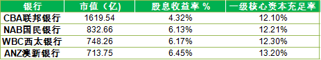 银行股投资价值从核心资本来看,四大行CET1均高于 APRA(澳大利亚审慎监管局)对四大银行CET1资本比率最少10.5%的基准要求,也就是说,四大行安全性及稳定性有所保障,均具备较高吸收亏损能力缓冲资本,以及抵御不利经济形势的能力。