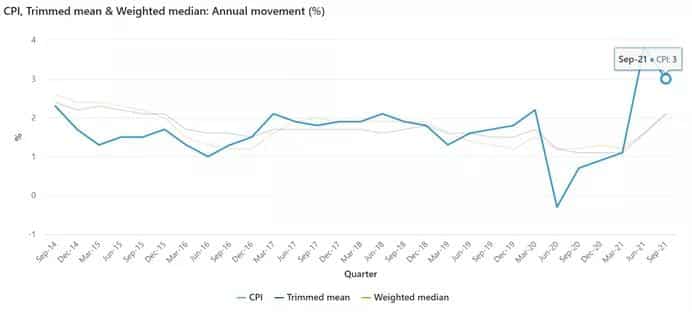 通货膨胀的压力正在推动国债收益率上涨最近咱们澳洲的国债收益率近期上涨的很快,到目前咱们澳大利亚十年期国债的收益率已经上涨到了1.8,来到了上半年的高点。 关于这次国债收益率的大幅上涨的原因,背后的导火索是刚刚公布的新一轮的CPI数据,这也是我们平时所说的用来衡量通货膨胀的指标。图一:澳大利亚CPI走势