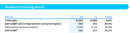 尽管部分食品价格通胀有所缓解,而消费者支付的其他平均价格仍然居高不下。Woolworths 的平均食品价格去年上涨了 5.2%。Woolworths 表示,第四季度货架价格通胀率有所放缓,为 5.2%,而第三季度为 5.8%,水果和蔬菜的生长条件有所改善,牛肉和羊肉牲畜价格下降导致价格放缓。随着供应链的缓慢复苏,产品供应量的提高使得食品业务蓬勃发展。但由于全行业成本压力,货架价格通胀率仍处于较高水平。家庭支出趋向:自营品牌、必需品、居家烹饪Woolworths集团作为澳大利亚最大的超市供应链,财报同时为我们投资者提供了高息环境下家庭支出情况的线索。首席执行官布拉德·班杜奇表示,预计消费环境仍将充满挑战,消费者将继续减少非必需品的购买。Woolworths 自营和独家销售额在 2023 财年增长了 5.4%,下半年销售额增长强劲。顾客越来越多地购买该自有品牌的商品,并注意到食品储藏必需品、长保质期牛奶等饮料和婴儿产品的强劲销售。这说明越来越多的购物者在家里吃饭,并在预算紧缩时转向更便宜的自有品牌。Woollies X:电商配送或成新起之秀此外,Woolworths集团旗下的Woollies X板块销售额上涨5.6%,达64.32亿澳元。Woollies X目前主要包含Woolworths电商销售,配送以及客户忠诚项目等。本次财报显示,Woollies X推出的Direct Boot超市直送业务,尤其是支持当日送达,受到了顾客的喜爱,推动Woollies X销售上升。