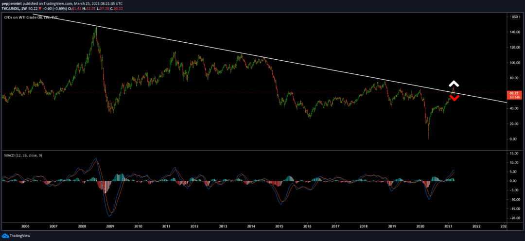 今天与大家分享的主角是美国原油USOIL或WTI:在经过去年活久见行情之后,因供需关系与战略资源属性等因素集体发酵作用之下,原油价格一路走高。在近期出现一定调整之后,对于现价60左右的原油目前正处于关键价格区域。因美元走强等因素存在,美油价格存在短期波动可能,极端情形不排除调整至50可能。但也正像周末邮件所说,在我个人看来原油价格年内大概率将冲至80-100,甚至会有更高价格出现。原油相关产品可能值得投资者酌情进行配置。免责声明:GO Markets分析师或外部发言人提供的信息基于其独立分析或个人经验。所表达的观点或交易风格仅代表其个人;并不代表GO Markets的观点或立场。联系方式:墨尔本 03 8658 0603悉尼 02 9188 0418