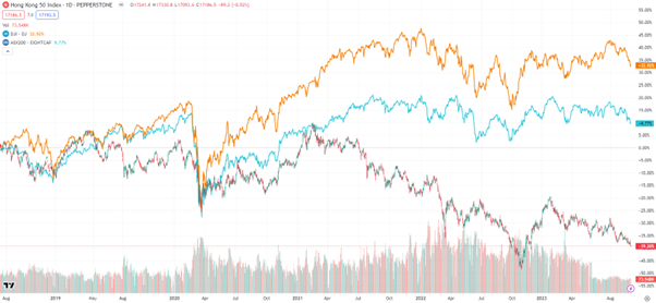 从上图可以看到,疫情前2019年至今,一个完整的周期,到今天为止,美股道琼斯上涨了33%,澳洲ASX200指数上涨了10%,而香港恒生指数下跌了40%。用数字大家看到的更明显,比如10万美金,投资美国股市,最差你买了指数,相当于基金中的基金,放那不动,咱也不说什么梯度买入,什么定投,就是简简单单的买入,用GO Markets的优势,来个2倍杠杆,然后把咱们的MT5软件删除,等到今天,打电话问一下Jacky,我账户里面多少钱了,我就告诉你,16.6万了。然后快快乐乐的取出6.6万,去换一辆特斯拉,或者带着全家去美国,去欧洲,去日本,找一些地方转一圈。但是,如果咱们用2倍杠杆,买了HK50,很不幸,亏得啥也没了,只剩2万了,亏了8万,只能开着Toyota,骑着小电车,去送送外卖,开开Uber,带着一丝忧伤,告诉下一代,一定要靠勤劳致富,投资什么的咱还是不适合。近期港股连番下跌,不建议大家抄底,虽然之前说过,政策底来了。但是,一旦市场出现破位下跌,不要靠信念抄底,多头打不过空头,咱们就战术性撤退,实在是想赚钱,打不过就加入,顺势做空。所以,投资和打仗一样,瞬息万变,切不可一个思维走到底,除非咱们钱很多,可以不停的加仓,拉着大盘往上走。我非常喜欢游击战的策略,赚一点就跑,咱们钱少好掉头,每一次短线顺势,都要增加一点自己的资金规模,这样积少成多。千万不要用自己的几万几十万去打阵地战,对面空头凶的很。
