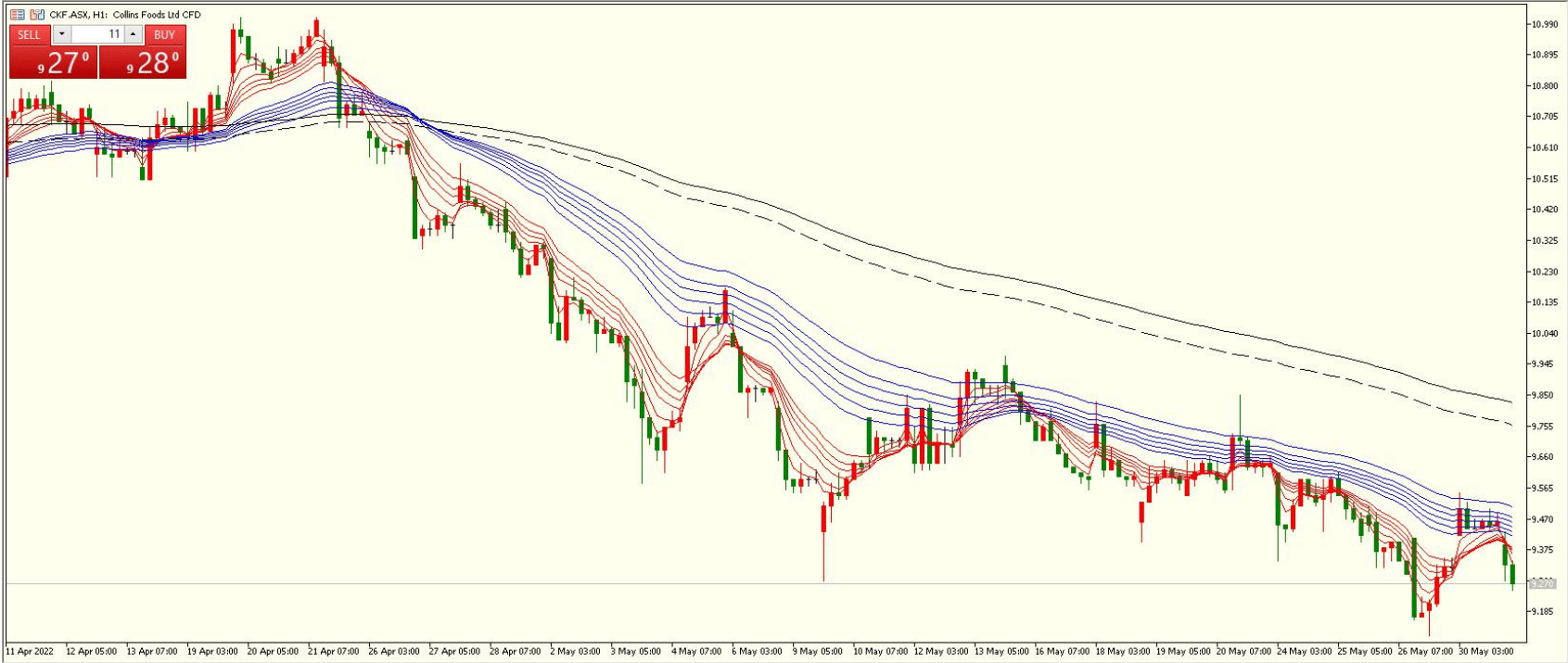 Collins Foods 一直以成为世界顶级餐厅运营商为愿景,在澳大利亚,德国和荷兰经营 KFC 和 Taco Bell 餐厅,并且是日本和泰国 Sizzler 餐厅的特许经营商。在全球有 15,000 名员工,并经营着 323 家 KFC, 22 家 Taco Bell 和 64 家 Sizzler。公司分为 4 个部门,分别是:澳洲 KFC,欧洲KFC,澳洲 Taco Bell 以及 一个其他部门,主要包括共享服务和亚洲 Sizzler 餐厅。其中,澳洲 KFC 部门收入占比最大超过 80%(81.12%),在澳洲拥有 254 家门店。其次是欧洲 KFC 部门为15.86%,在德国拥有 16 家 KFC,在芬兰拥有 35 家 KFC。澳洲 Taco Bell 部门收入占比为 2.78%,而其他业务部门的收入占比为 0.0175%。其中增长最大的部门为澳洲 Taco Bell 部门,为 33%,主要得益于在澳洲新开的 5 家门店所带来的业务。其次是欧洲 KFC 部门的增长率为为 31.72%,澳洲 KFC 部门增长了 4.39%。 股价:9.275 上市时间:2011-08-04 市值:$1.1B 52 周价格范围:$9.11 - $14.3 行业:非必需消费品 股息率:2.6%技术分析:Collins Food 的股价在去年年底达到开盘以来的高位后,一直在维加斯通道下方,成下行趋势。Collins 宣布其将在 6 月 28 日公布其最新的截至 5 月 1 日的年报,需要特别关注。