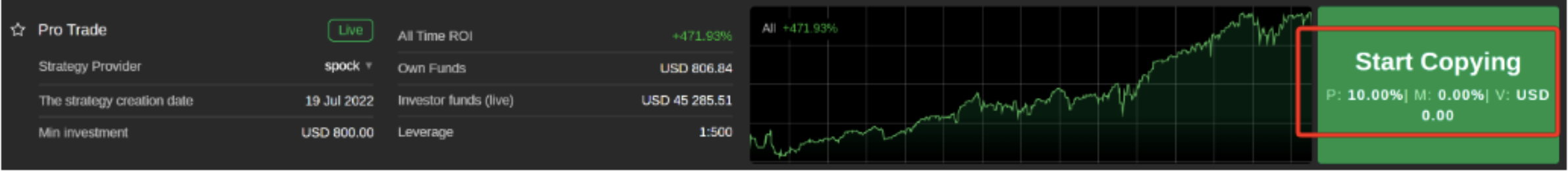 其中在每个策略主页上,我们会看到三个费用指标:P(绩效费),M(管理费)和V(交易量费)。这些费用会直接影响你的实际收益,因此在决定是否复制一个策略前,务必要了解其成本结构。具体的计算公式可以参考 cTrader 官网说明: https://help.ctrader.com/ctrader-copy/fees-calculation/