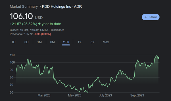 最后一个就是主攻三四线城市,以及中低端市场的拼多多的股价走势: