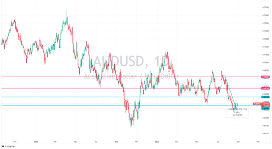 央行行长交棒在即维持高利率已是定局澳洲已经在上个月宣布,现任澳联储主席菲利普洛维将届满卸任,Michelle Bullock将成为澳大利亚64年来首位女行长,并将于9月18日开始履职。这也使得此次央行年会将是菲利普洛维的卸任之旅,因此九月初澳洲的议息会议也颇为引人注目。但是有一点,根据美国方面的鹰派态度以及诸多迹象都表明,各国央行领导人达成共识,利率会在更长的时间内保持在高位,以确保通胀下降得到遏制,澳洲也自然不会例外,维持现有高利率已是板上钉钉。那么澳大利亚后续加息的空间有多少呢?澳大利亚央行审查审查提出了澳大利亚央行的双重使命,对价格稳定和充分就业给予同等考虑。也就说,澳洲联储从来就不是一家只以通胀为目标的央行,从长远来看,澳联储认为双重目标是完全一致的,充分就业率将在低通胀中实现其可持续性,“稳通胀、促就业”是澳央行后续决定是否加息的主要考量。澳大利亚央行认为可持续充分就业率处于 4% 的较低范围内。而本月中8月17日公布的澳大利亚7月份失业率数据上升 0.2 %,达到3.7%,就业市场显示出“转折点”的迹象。我们认为,在考虑充分就业的前提下,澳联储对于后续加息即将更加谨慎,加息的空间已经非常有限。澳元走势近期澳元表现疲软,澳元对美元一度跌破0.64关口。CPI数据出炉后,1分钟澳美货币对下挫21.4点,下探0.64496后收复跌幅。此外,美联储主席鲍威尔上周五在杰克逊霍尔的讲话也为美元提供了新的支撑。根据CME美联储观察工具,在鲍威尔讲话之后,市场对美联储鹰派押注有所增强,11月加息的概率从38%升至50%。随着澳大利亚通胀继续回落、劳动力市场降温以及中国经济增长前景不确定性增加,澳元短期大概率继续承压。澳美货币面临上行关键阻力位0.65。