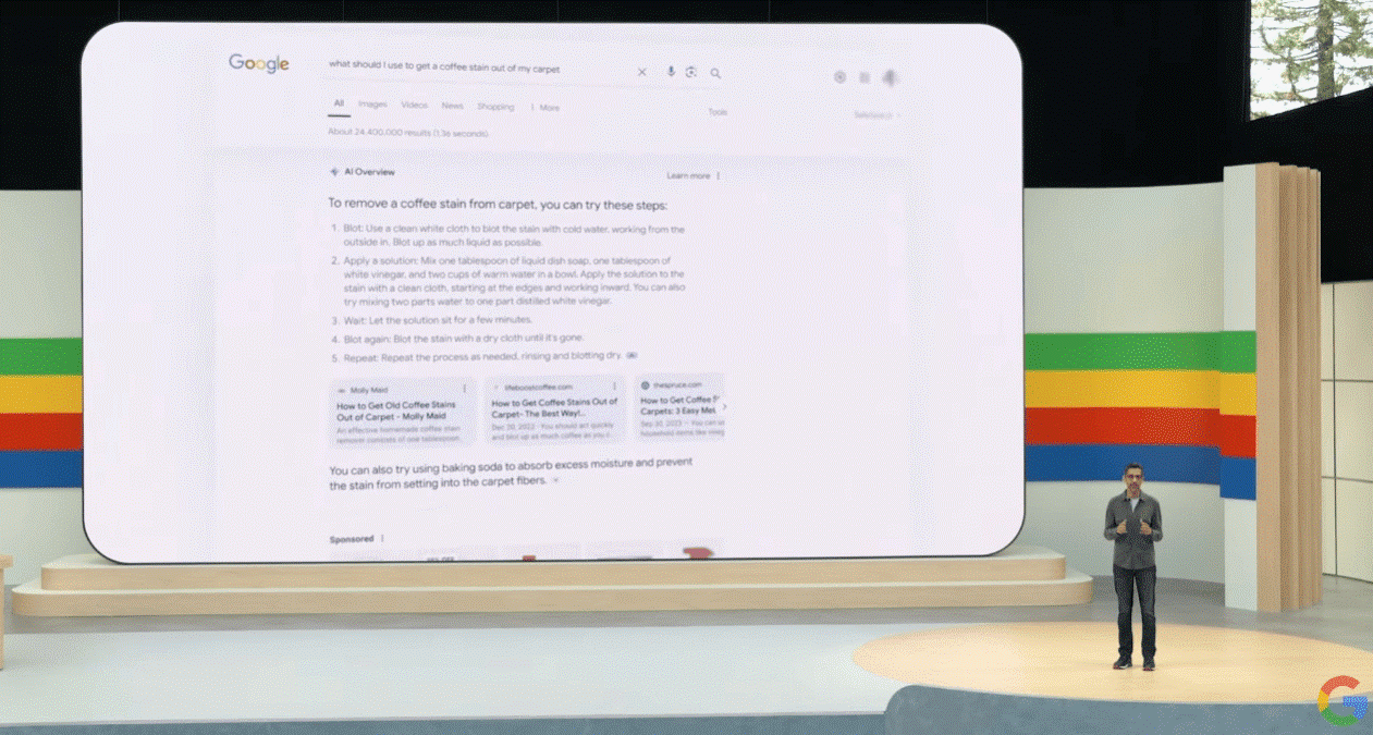 OpenAI和谷歌相继举行了新品发布会,各自发布的产品互相对标,大有互相较劲之意。但唯独在AI搜索引擎上OpenAI虚晃一枪,并未成功发布。但谷歌除了对标OpenAI已发布的产品之外还发布了受万众瞩目的AI搜索引擎产品。首先让我们来回顾一下谷歌发布会公布的几项重要成果:1. 率先发布AI搜索引擎AI Overviews
