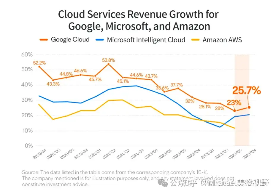 而最值得一提的当属谷歌云计算业务收入的快速增长。目前在云计算基础服务市场谷歌占据11%份额位居亚马逊和Azure之下,但其云服务业务的收入正在快速增长。这是证明谷歌在AI领域仍有潜力的一个重要证据。就算退一步来说,在谷歌搜索近乎垄断搜索引擎市场的条件下,谷歌的AI搜索引擎研发甚至不是一定要达到一骑绝尘得地步,只要最终研发成果具有产品竞争力,功能完善,用户综合体验感是正向积极的,那么凭借其护城河的深度,核心业务的超高市场份额也能够带动人们主动过选择使用谷歌的AI引擎,毕竟谷歌已经凭借其遍布人们日常生活工作的核心业务获得了庞大的用户粘性。因此我个人认为谷歌的股票仍具有升值空间。