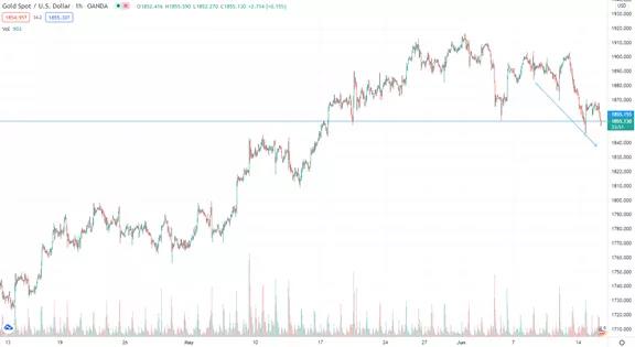 XAUUSD 黄金:黄金价格跌破了区间通道的支撑线,跌破1855美金后,有进一步向下的趋势。因此短线交易者可以顺势做空,止损设置在1870第一个阻力价格,或1880和1900美金。向下的空单目标价格是1840和1820美金。免责声明:GO Markets分析师或外部发言人提供的信息基于其独立分析或个人经验。所表达的观点或交易风格仅代表其个人;并不代表GO Markets的观点或立场。联系方式:墨尔本 03 8658 0603悉尼 02 9188 0418
