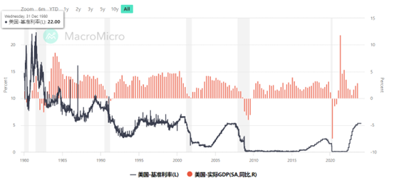 在经济层面,与历史上的高通胀引发的加息周期相比,本轮新冠疫情期间大放水后的货币紧缩具有独特性。目前,美国的各项经济数据显示美联储的经济仍然强劲。通过对比美国基准利率与美国实际GDP同比,本轮加息周期临近尾声,经济意外与利率保持一致升势。而观察历史1994年、2000年及2006年,经济均呈现加息后的明显放缓下行趋势。