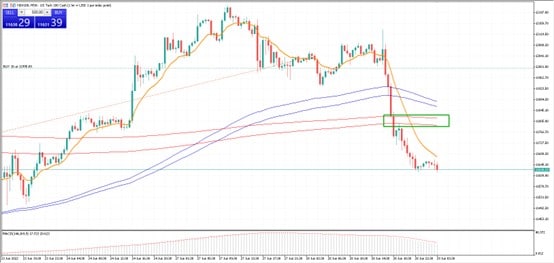 昨日,美国6月谘商会消费者信心指数录得98.7,至2021年2月以来的最低水平,加剧市场对经济前景更加悲观的看法,结束了本轮的反弹,美股大幅收跌,其中标普跌幅最大达2.95%,标普下跌2.01%,道琼斯下跌近500点。纳指作为三大股指中波动最大的产品,我们仍然考虑将其作为近期股指中做空的主力,目前ndx100报价11630附近,如果后续出现反弹,在30分钟的以Vegas双通道作为阻力,可考虑逢高做空的策略,止损可放在轨道上方附近。