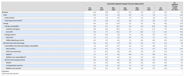 这些数据可能会给美联储一些喘息的空间,汽油价格和二手车价格的降低也让消费者的生活成本有所下降。虽然如此,但是超过8%的通胀仍是一个很高的数字,特别是食品的物价还在上涨,实际上对于民众的生活成本在侧面增高。由于多种因素,包括全球供应链混乱、政府在 COVID-19 大流行初期的大规模刺激以及俄乌战争等多种因素,美国消费者价格一直在飙升。