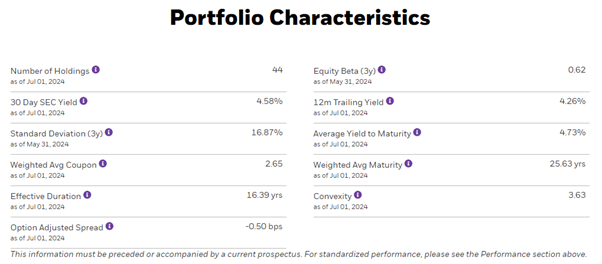 (Source: BlackRock)联邦基金利率期货反映市场对于长期利率水平的预期,如果参照9月份到期的CME 30天联邦基金利率期货价格$94.755,我们可以推算出9月份EFFR为5.245%,如果我们假设9月份真的降息到5.245%,结合久期和当前价格,我们可以按照以下方式粗略推算出9月份TLT价格:根据下图,TLT有效久期为16.39年,当前利率假设5.245%,则修正久期约为16.39/(1+5.245%) ≈15.57年,所以当利率从5.5%变动到5.245%,i.e. 0.255%时,TLT所跟踪的美国20+年期国债价格上升$3.76(15.57*0.255%*94.755)。由此我们得出了一个结论:当美联储在9月份将目标联邦基金利率降低约25个基点时,我们估算届时TLT价格为98.517,上涨4%。在当前高息环境下,TLT价格已接近2005年水平,处于相对底部区域,而降息预期下,长久期美国国债价格还有上升潜力。