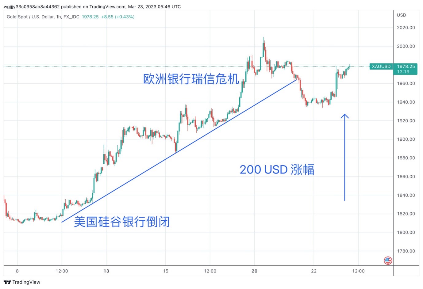 (CBA,ANZ,第一共和银行,西太平洋合众银行,瑞银近期股价走势图. Source : Tradingview)在这些讲话看来,鲍威尔更像是在暗示如果加息继续,金融压力继续上行,但是对于储户会提供更广泛的一个帮助。但是耶伦的讲话加速了投资者们的恐慌情绪,特别是对于银行业的投资者。于是美股中的银行股开始领跌,随之而来的就是大盘的迅速下跌。苦苦挣扎的第一共和银行和西太平洋合众银行股价均出现下跌,跌幅分别超过15%和17%。追踪美国区域性银行的SPDR S&P Bank ETF 也下跌了5.7%。区域银行股价下跌拖累整体市场。而出于对银行的不信任,黄金也出现了快速拉升。