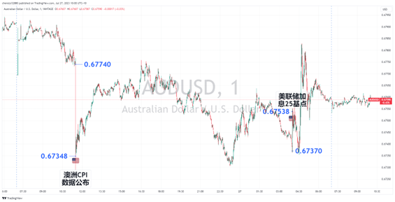 热门话题澳洲方面,2023年7月26日,澳大利亚东部时间11:30,2023年2季度CPI数据重磅出炉。整体来看,澳大利亚通胀超预期放缓,澳联储加息已见成效。该消息削弱市场对澳联储加息的预期,利空澳元。