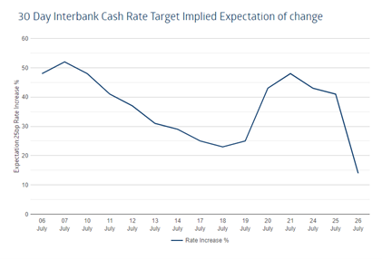 但是笔者认为尽管本次通胀数据整体超预期缓和,澳洲通胀水平与澳联储目标的2-3%区间相比仍然较高,服务业通胀居高不下,租金增速持续,叠加前期劳动力市场仍然强劲,都支持澳大利亚后续进一步加息。本次美联储加息25bp后,澳洲在上个月暂停一次加息的背景下,很可能会在8月跟随加息25bp。目前市场预期后续仍有1-2次加息。