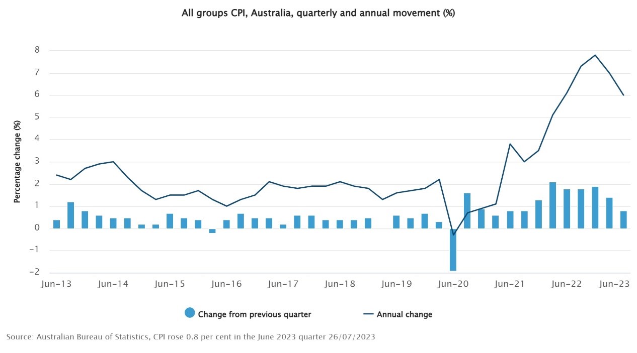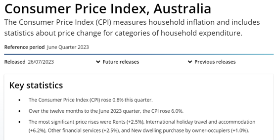 澳洲通胀数据解读具体关注澳洲通胀数据,澳大利亚第二季度CPI年率 6%,预期6.20%,前值7.00%,实现自去年4季度后连续第二个季度放缓,为去年6月以来最低值。澳大利亚第二季度CPI季率 0.8%,预期1.00%,前值1.40%,实现自2021年9月以来的最低值。