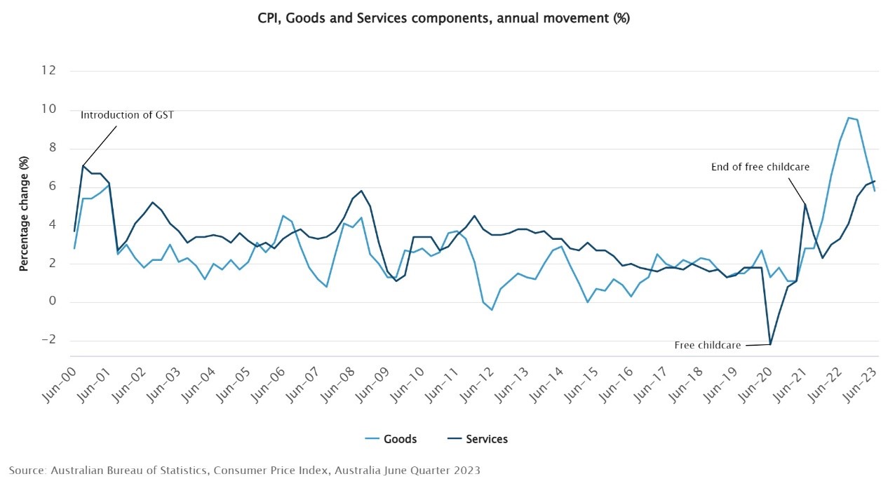 进一步来看,商品通胀持续稳定下降,录得5.8%,连续第三个季度下降。而服务业通胀再创2001年以来的最大增速6.3%,主要归因于服务类项目如租金、外出就餐、假期旅行及保险的物价上涨以及工资的强劲上涨。