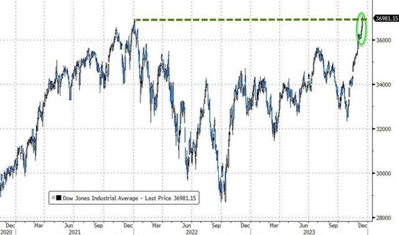 联储主席鲍威尔在发布会上表示,降息显然是讨论的话题,但对于何时开始货币宽松仍为时尚早。这一决定被视为美联储首次明确表态,承认通胀放缓趋势。分析人士指出,联储此次释放的信号表明对通胀好转速度的乐观,为明年降息敞开了大门。消息利好资本市场,道指收涨512.3点,涨幅1.4%,报37090.24点,史上首次收盘突破37000点。标普收涨1.37%,报4707.09点,去年1月12日以来首次收盘涨破4700点,连续两日创去年1月以来新高。纳指收涨1.38%,报14733.96点,刷新去年1月14日以来高位。