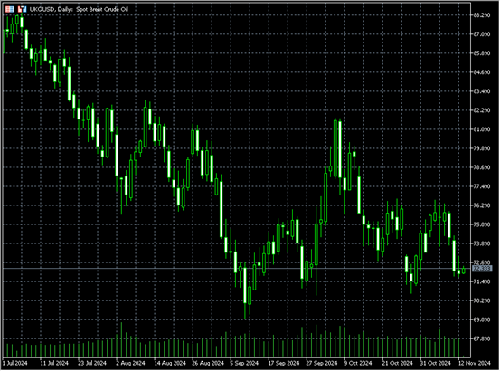 在OPEC开始持续下调石油需求预期后,市场对油价的下行风险表现出更高的关注。布伦特原油(UKOUSD)和WTI原油(USOUSD)四个月以来的价格都因此承压下行,市场的避险情绪明显上升,通过图像也可以看出来在这四个月期间布伦特原油和WTI原油整体都呈现出了下行的趋势。