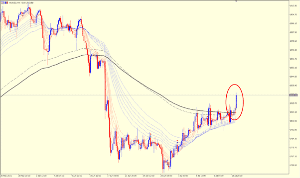黄金:黄金正式突破了4小时和日线的关键分界点。直接冲到了1826高度。我个人认为上涨空间很大,只要未来24小时价格不要跌回1810以下,那黄金上涨就会很大机会继续。