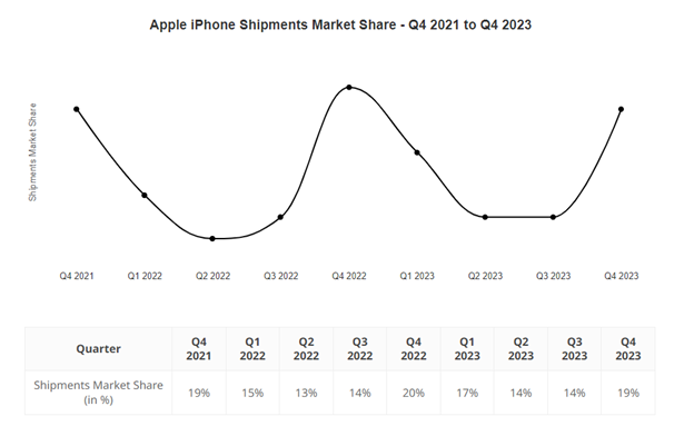 苹果与谷歌目前的处境可谓是同病相怜,三星推出的AI实时语音翻译功能,小米的AI摄影功能等抢尽了先机,相比之下苹果的Siri就显得极其普通甚至有些时候可以说是非常的气人的,从上图iPhone近三年间过山车一般的出货市占率也能够感受到苹果的尴尬处境。而谷歌则是处于被微软和Open AI的双重打压之下,Gemini与Sora两大模型几乎同时问世但却远不及Sora的功能酷炫,谷歌未能激起太大的水花。但是如果谷歌和苹果可以最终达成合作,成功的将Gemini模型嵌入ios系统使得苹果能够在手机端实现新的生成式AI功能,让用户实现与Siri进行多轮对话,那么这可以说将是一个质的飞越。究竟苹果与谷歌能否最终达成战略合作呢,让我们拭目以待。免责声明:GO Markets 分析师或外部发言人提供的信息基于其独立分析或个人经验。所表达的观点或交易风格仅代表其个人;并不代表 GO Markets 的观点或立场。联系方式:墨尔本 03 8658 0603悉尼 02 9188 0418中国地区(中文) 400 120 8537中国地区(英文) +248 4 671 903作者:Olivia Huang | GO Markets 悉尼中文部