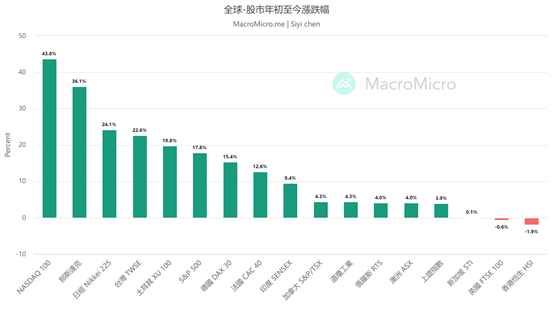 热门话题今年上半年以来,全球主要国家都处于加息进程中。在高利息高通胀的环境下,许多投资者都会表达一种感受:市场不好,经济不好。因此大多抱着这个想法没有参与到投资市场里来。但是大家是否知道上半年全球主要股指均实现上涨?此外,上周各类资产更是全线开启强势的单边上涨行情。让我们来一起看下:首先看全球股市在2023上半年整体表现是仍然强劲。美股三大指数再创今年以来新高,进入技术性牛市,美股已进入技术性牛市。AI狂潮助攻下,我们上次有特别分享过的纳指100指数创史上最大半年涨幅,印度、德国、法国股市创历史新高,日经指数回到30年前的高点。