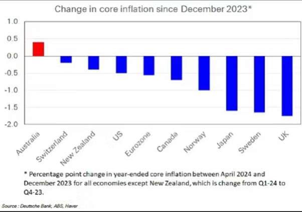 还是那句话,以下推测都是猜,除了澳联储货币委员会成员以外,谁也不知道他们在下一次会议时会不会加息。但是毫无疑问,有点是明确的:在西方主要国家里,目前只有澳洲的通胀在过去6个月是上涨的。所以,之前当别人猛加息的时候,澳洲悠哉游哉说,我不是你们,我不需要这么猛,我4%就够了。当初努力不吃苦,现在吃苦很努力。澳洲成为了西方社会的落后分子,降息毫无疑问,也会是最后一个跟上的。