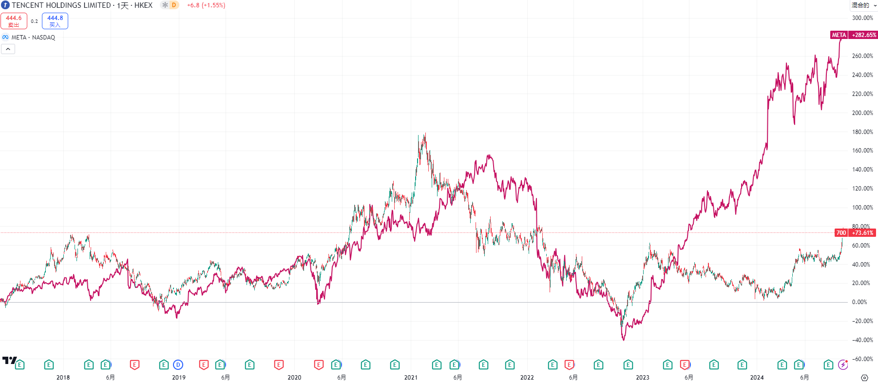 从上周24号上涨的第一天,我就明确了,买就完了,这是情窦初开的男孩,遇见了一见钟情的女孩,并且女孩也是心仪男孩,一入爱河,感觉对了,不需要问什么,猛烈的上涨一如猛烈的爱情。如今,市场验证了我的判断。部分券商开户数量激增,股市相关的访问量超过千万,散户开始大量入场。毕竟没有人能够抵御股市快速上涨带来的财富增值的诱惑。预计国庆节期间,大家有时间看看新闻,感受到了股市牛市的气息,国庆之后,还会有更多的散户进入市场。目前,中国的资产,部分被低估,部分被高估。海外投资者还是需要做出筛选。在刚刚上涨的初期,什么资产都可能上涨,但是在1-2年的投资周期中,能够一直稳定上涨,比如美国的苹果公司,亚马逊公司,微软公司等,就需要公司本身有核心竞争力,能够创造社会价值,才能长期稳定增值。国庆节之后,我认为大概率还是会继续上涨,可能震荡消化一部分获利盘,但是高成交量背后,也意味着获利盘可能已经完全被消化了,所以后续继续上涨的概率不小。如果没有办法直接参与A股交易的投资者,可以买一些龙头的中概股,比如港股的腾讯,比亚迪等。以腾讯为例,股价从今年的260港币附近,上涨到目前444港币附近,接近翻倍。但是跟Facebook等美国科技股相比,还有很大的差距。Meta公司,就是Facebook,在疫情后也和腾讯一样下跌,但是下跌20%之后,股价上涨了280%,接近涨幅3倍,而从最低点反弹的腾讯,只上涨了73%。因此,中美双方的企业估值在22年之后出现了较大偏差。如果未来估值回归,腾讯这类企业股价还有接近100%的上涨空间。当然,中概股和恒生面临的问题,也会在美国大选尘埃落定之后,看美国新政府对待中国企业的态度,如果贸易战和人民币危机再次发生,那么就意味着中概股可能再次受到冲击,因此,买入中概股可以作为一个资产配置,但不是核心的资产配置。