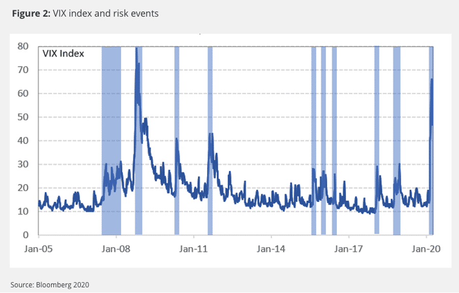 现在各大媒体的声音是,如果普京接下来认定西方在继续借助乌克兰作为桥头堡反俄,他就真的会出兵,美方威胁届时将把俄罗斯踢出美国控制的世界金融体系,包括制裁俄罗斯向欧盟输送天然气的北溪一号和二号管线等。今天我们的主要话题不在政治,我们关注的是此次风险事件对整个金融市场造成的影响,最直接的就是卢布的贬值,美元,日元,等避险货币的升值。一般来讲,我们平时聊到的避险货币主要是,瑞士法郎,美元,以及日元。我们先来看一下瑞士法郎,由于瑞士是永久中立国,是欧洲唯一未受两次世界大战波及的国家,并且瑞士政府对金融,外汇实施保护政策,当国际政治经济发生动荡时,瑞士法郎能够在一定程度上抵御外部冲击的影响,具有保值的属性。一旦给人们留下了风险货币这个特点,当风险事件发生的时候,人们更愿意持有,需求得到保证,因此也多了保值的属性;美元作为避险货币应该是最好理解的了,那美国呢,在经济,政治以及军事实力的支撑下,成为全球主要避险货币之一,美元的全球霸权地位很大一方面也是依靠美国的军事实力获得的。美国每年耗费巨额军费,维持全球海外军事基地的开支。如果将美元比作收割全世界的镰刀,那么美国的军事实力无疑就是这把镰刀的刀把,有时,钱不一定都要花在刀刃上。在布雷顿森林体系瓦解之后,全球货币体系以美元为中心,随着全球化的发展,美元逐渐成为外汇交易中最重要的货币。贵金属,大宗商品等都是以美元来计价的。由于美元的强流动性,(毕竟全球的国际贸易很难完全避开美元),因此,一旦市场中有风险事件发生的时候,人们更愿意持有美元资产,来规避风险,毕竟现代货币背后是政府信用的背书,全球重要国家基本都有购买美国的国债,所以,人们更愿意相信,即便是别的货币崩盘,美元也不会有问题。说起日元也有避险属性,并且即便是像福岛核事故时,日元都出现了升值。相信很多朋友都有些难以置信,但这的确是事实。为什么日元拥有避险属性的?这个就要从2006年说起,2006年也是日本开始实行负利率的那一年。日本长时间的低利率环境,一方面促使日元成为国际套息交易中的主要融资货币。低利率导致日元融资成本极低,加上日元可自由兑换,因此投资者选择借入低息的日元资产,用以购买高收益的资产,而在汇率相对稳定的情况下,投资者的收益即为两者的息差。当风险事件发生,全球避险情绪升温时,投资者卖出高收益资产,然后买入日元偿还贷款,从而导致日元需求在短时间内上升,推升日元汇率。因此日元带避险属性属于被动避险,不像是美元,是出现风险事件的时候大家主动去持有。另一方面,低利率环境还限制日本央行继续降息的空间,令日元突发贬值的概率变小。当全球性的风险事件爆发时,世界经济面临的下行风险加剧,高利率国家央行倾向于放松货币政策以促进经济复苏,而日本已处于负利率区间,进一步放松的空间很小。举个例子当银行存款利率为-0.1%时,人们就不会把钱放在银行了,后续降至-1%依旧是同样的结果,所以央行没有任何手段来防止人们只存不花了。那各种避险货币对于风险事件的反应程度如何呢?这里我们要引入VIX恐慌指数,从下图中我们可以看出,每当风险事件发生的时候(蓝色底色),恐慌指数都会出现暴涨。