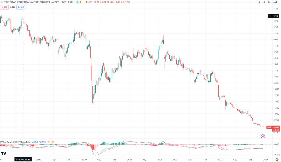 曾经辉煌的Star赌场,人满满的,但是现在停车场都停不满。本周Star股票价格继续下跌了10%。其股价从疫情前的5澳币,一路下跌到目前的0.46澳币,堪比当时的中概股,感觉会面临破产风险。其最严重的事情,就是在新南威尔士州无限期吊销赌博执照,以及昆士兰州推迟吊销执照。各州都进行了对Star的调查,发现Star不适合持有赌场牌照,并对其进行暂停营业的处罚。一个赌场,不适合持有赌场牌照,这个还是很痛的。