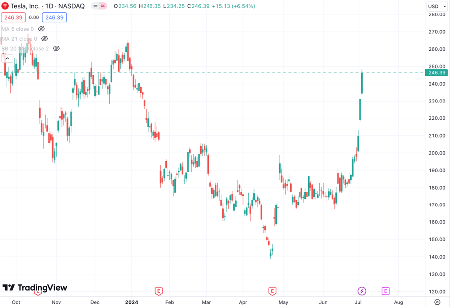 摩根士丹利维持了对特斯拉股票的“增持”评级,目标价310美元,预示着还有30%的上涨空间。这就表明,华尔街看好特斯拉在其年度会议后继续保持正面势头,马斯克成功地将投资者的注意力从短期挑战转移到了人工智能和机器人等长期机会上。华尔街对特斯拉的AI出租车特别感兴趣,这是一项马斯克几个月前就已经提到的全自动驾驶服务,可能会是公司未来增长的一个重要推动力。Dan Ives,来自Wedbush Securities的分析师,也认为随着机器人出租车的推出,特斯拉可能会在今年下半年迎来大反弹,这将是公司的一个转折点。他们甚至把目标价定在了300美元,认为在最乐观的情况下,年底前特斯拉的股价可能会达到400美元,比现在高出63%。在公布了好于预期的交付数据后,特斯拉的股价在周二上涨了10%,周三又上涨了6%,目前的交易价格是246美元。看来特斯拉几乎抵消了今年的下跌,现在全年的下跌幅度不到2%。