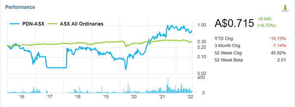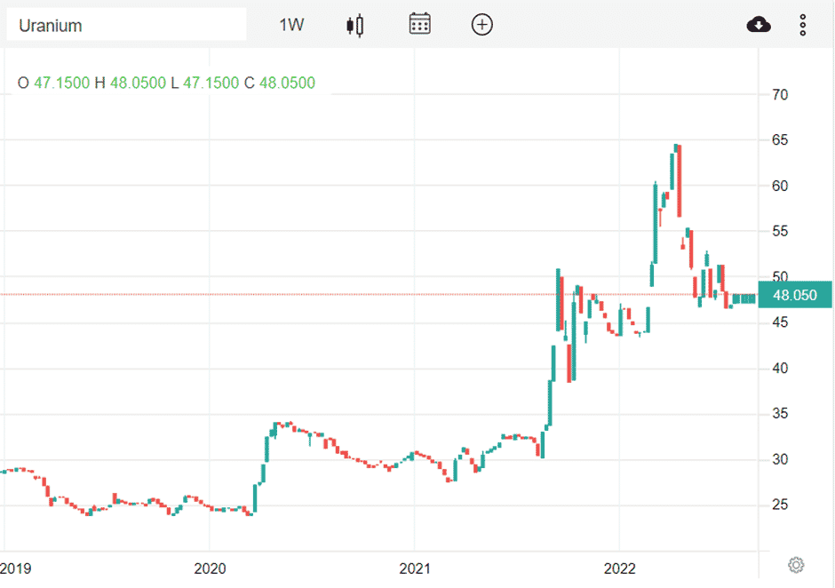 近年来,碳中和的呼声越来越高,核发电被重新推上舞台,其原材料铀也是开始回到大众视野。澳大利亚作为资源大国,其铀储存量167.3万吨占世界的31%,但是产量仅仅占全世界的10%不到。在澳大利亚,铀矿的勘探和开采有着严格的法律约束,这样的情况下,澳洲是不太愿意建立新的油田,不仅不放宽开采限制,甚至还越来越严格。在对于资源的重点保护下,澳洲还有很大份额的铀未见天日。在近五年来,铀的价格波动性较大,造成了收入的不稳定性。在2011年福岛核电站核泄漏之后,核能源环境污染和较高危险性成为世界关注的话题,核电站的安全性再次被质疑。后果就是铀作为核动力能源的关键材料,需求骤降,价格出现暴跌,以至于之后五年铀的价格一直都一蹶不振。在近五年,渐渐地有一些好转。首先是俄乌战争的开启,铀的期货价格回到了每磅50美元以上,天然气和石油出现的限制问题可能会导致能源转型,特别对于欧洲国家,目前非常依赖于俄罗斯的能源出口。