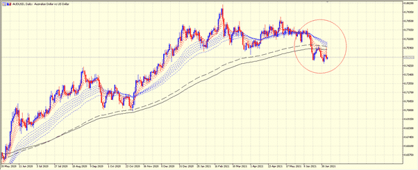澳元/美元:我们知道自从去年4月中国基本控制住疫情开始刺激经济恢复以后,铁矿石价格的暴涨帮助了澳元的上涨。这个涨势一直持续到6月中的美联储讲话。自从美联储开始暗示美国加息会提前之后,美元就开始逐步回升其价值,相对的,其他货币和美元的汇率就开始下跌。澳元就是其中之一。澳元目前已经在日线级别走势上出现了明显的破位。一旦其再打破上周的0.7450低点,很容易会继续下跌。而澳元如果要重新上涨,则需要把价格拉回到分界线以上,0.7610之上。所以我们投资者可以考虑的是:0.7450之下继续看空,或者在0.7620以上看涨澳元。免责声明:GO Markets分析师或外部发言人提供的信息基于其独立分析或个人经验。所表达的观点或交易风格仅代表其个人;并不代表GO Markets的观点或立场。联系方式:墨尔本 03 8658 0603悉尼 02 9188 0418