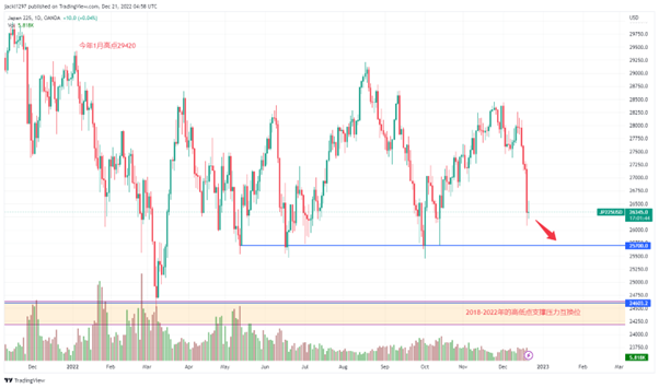 其次关于日本本国股市,一般提高10年起国债收益率后会抽离股市资金,在进一步影响借贷利率后,对企业的长期发展也是起抑制作用。笔者的偏见是看多日元的同时,可以看空日经指数。今年指数呈区间规则震荡走势,交投于29420-24600之间。目前处于下行小趋势中,短期目标位大概率可以锁定在25700左右,为5、6、9月低点。如果下破该位置,则看向24600-24000支撑区间。相反,如果价格超跌反弹,空头策略止损位可以考虑设置在26700。至于做多策略则需要更多信号和理由。